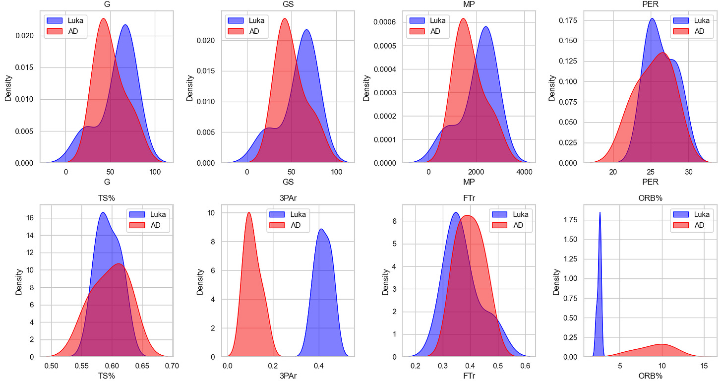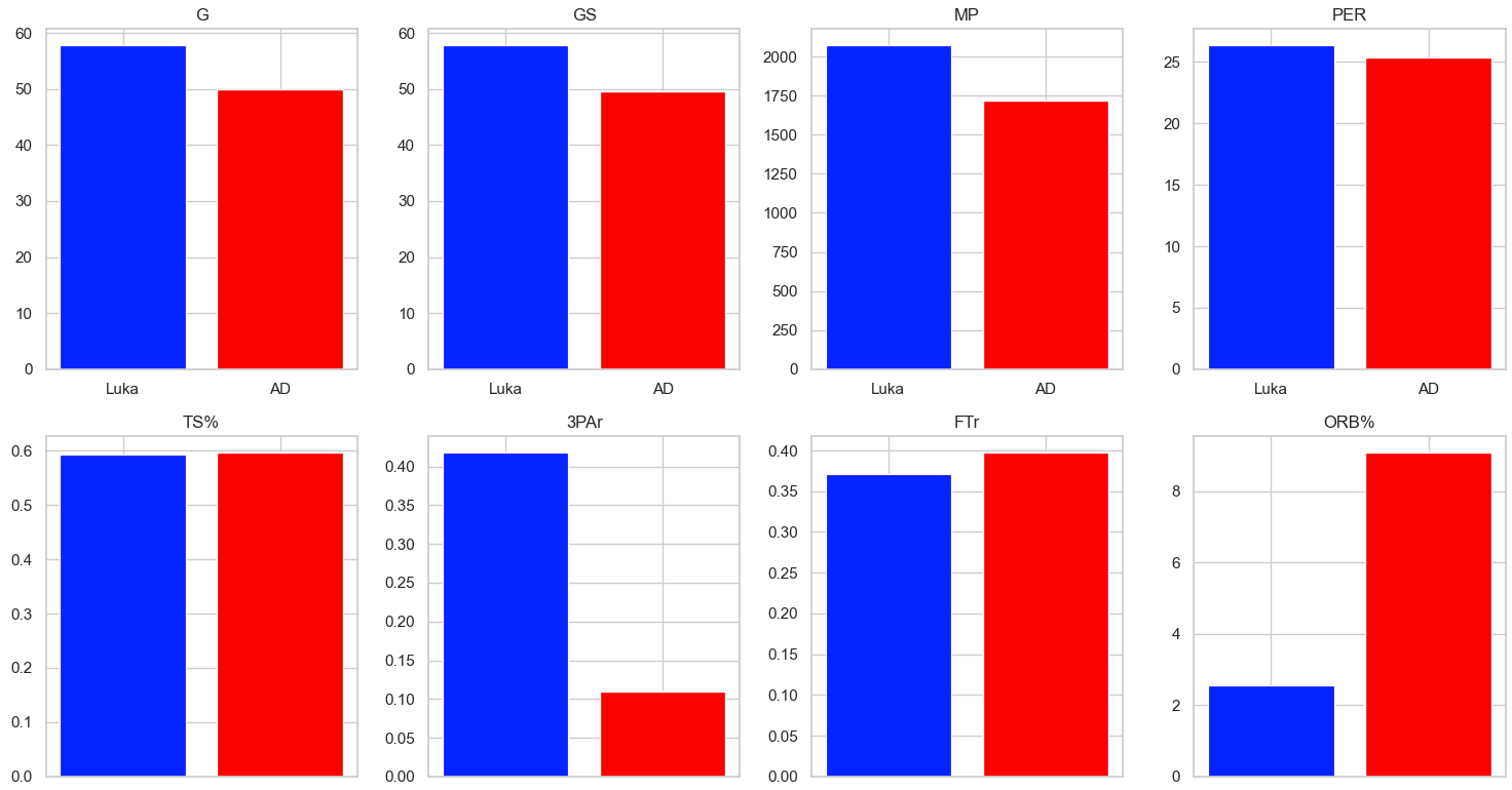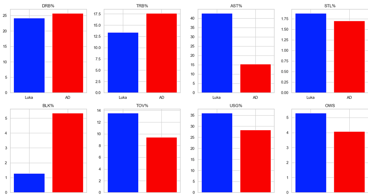 Luka’s advanced statistical metrics are, for the most part, better than AD’s. Luka is much more consistent, as seen by the lack of variance in games played, more consistently high VORP and WS ratings, and overall better statistics in impact and counting stats. The box plots were especially telling where in all of the impact stats Luka rated higher and his plot had much less variance than AD’s signifying Luka’s consistency year by year. While the statistics and visualizations show the dominance of Luka, we must acknowledge stats aren’t everything, and on-court fit will be a big component in evaluating the trade moving forward