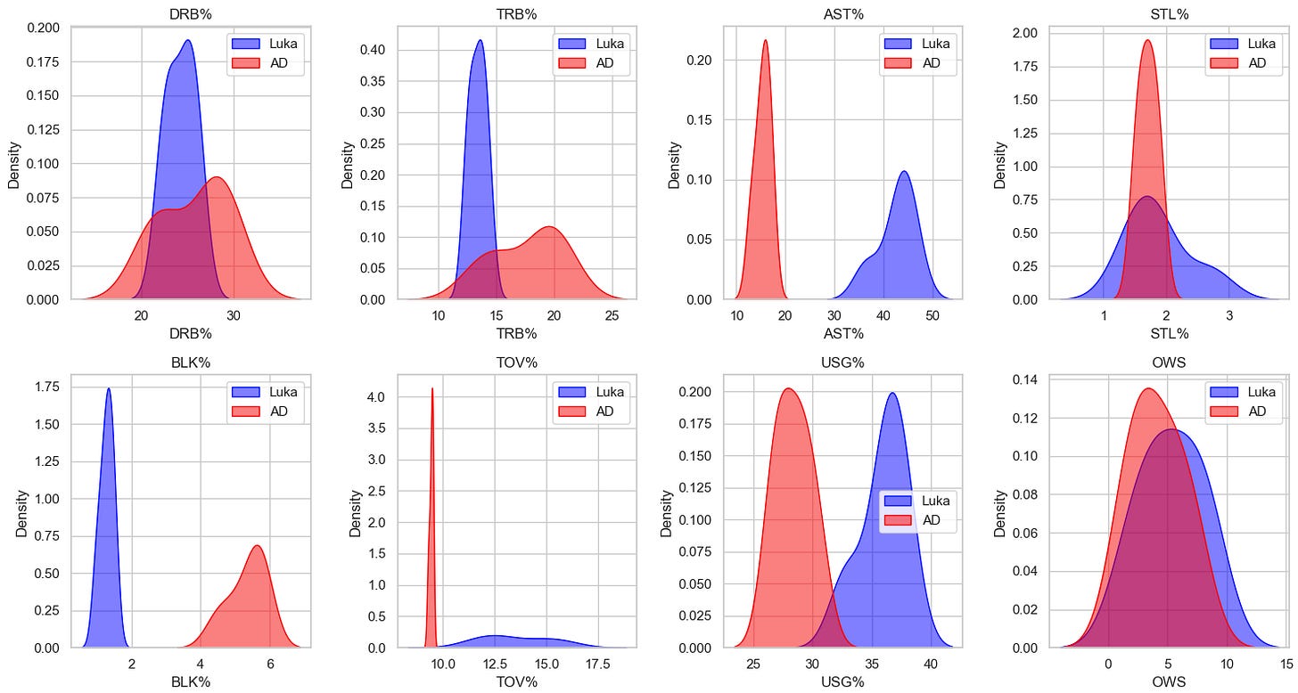 Our initial plan was to analyze trades involving players similar to Luka and AD, but we encountered a challenge: star players rarely get traded. Since this limited our ability to conduct any meaningful analysis, we pivoted our approach. Instead of focusing on trades, we examined how similar players’ performance changed from season to season, giving us valuable comparisons on player development and consistency. This challenge also acted as a finding in its way. The Luka and AD trade is standalone in its surprise factor and the star power of the players being swapped. Star players of this magnitude don’t ever get traded and the Luka/AD trade is a complete anomaly in all facets.